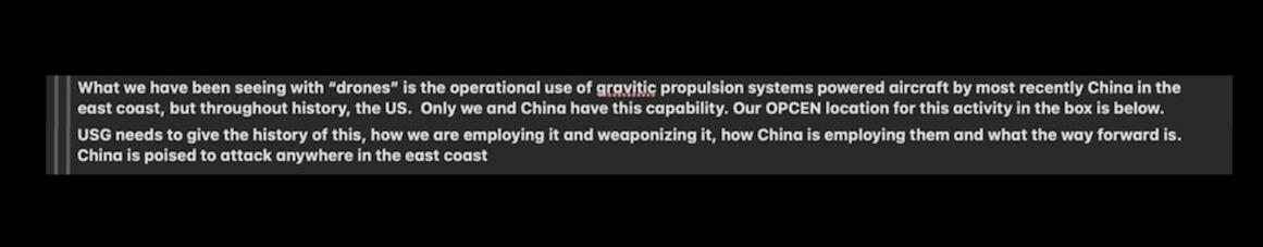 Now, will you continue to believe that Matthew Livelsberger is mentally ill, despite video evidence of a gravitic propulsion drone flying over one of the most important critical infrastructure locations on the East Coast on the same day as his warning? Will you continue to believe that these are United States drones when they have shut down multiple military and civilian airspaces of the U.S. and its allies? Will you continue to believe a manifesto that was never verified, and released in Microsoft Word format by the same country that Matthew was exposing? Or will you believe the true message that government officials initially ignored and denied, only to later confirm its authenticity and classify it, but only after it was released and verified by an independent source? Or, would you rather trust the high-level special forces drone technician with top-secret security clearances who sacrificed his life to expose this evil and the cybercriminal risking his life and freedom, or the government and “former” military officials who are somehow able to obtain a senate hearing and mainstream platforms to leak “top secret UFO info” against the government's will? There’s a reason his email was classified, and no government official is allowed to say anything about Matthew’s email. Yet, congressional hearings are being held to discuss the “unknown and likely extraterrestrial nature of UFOs.” Keep reading, you will know the purpose behind the truth and the lies once you finish this website.